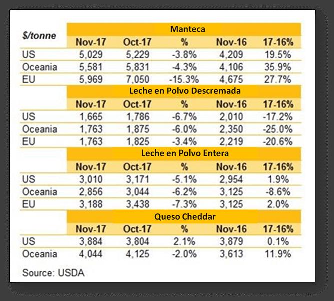 Producción mundial de leche y precio de las commodities 14/12/2017
