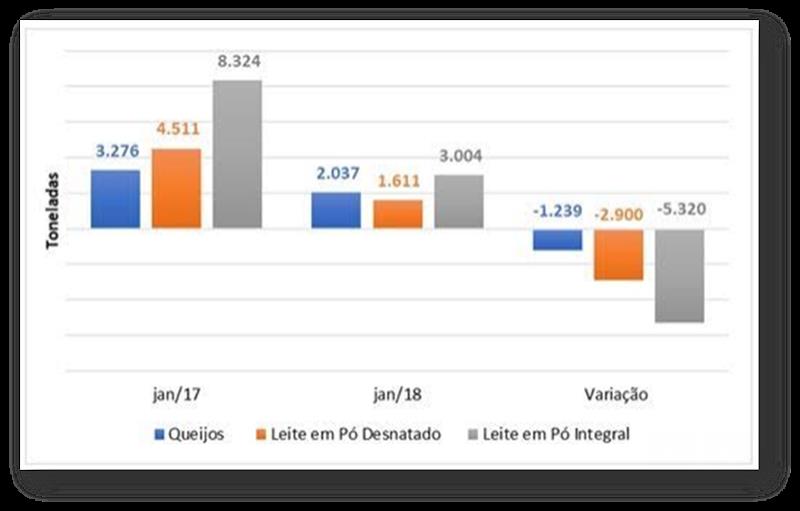 Las informaciones de la balanza comercial de enero de 2018 confirmaron las expectativas de caída en las importaciones lácteas brasileñas.