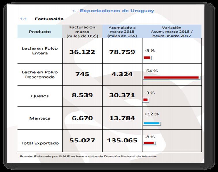 Uruguay: Exportaciones de Productos Lácteos - marzo 2018 7/4/2018