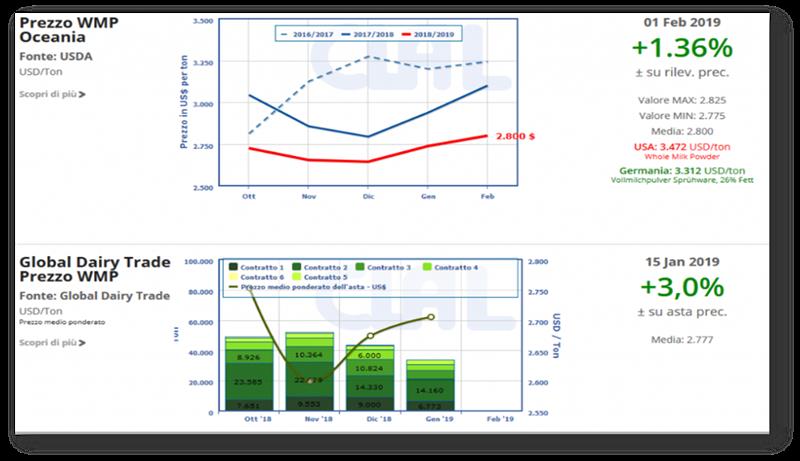 La producción de leche en junio-diciembre de 2018 fue 4.4% más alta que el año anterior. En términos de sólidos, la producción total de leche en 2018 aumentó en un + 2,1% en comparación con 2017 y fue superior a los 5 años anteriores.