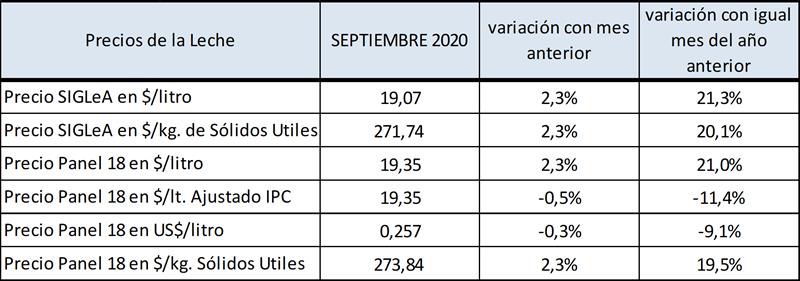 Precios de la leche al productor - septiembre 2020 16/10/2020![]() ![]() elaborado por el OCLA con datos de la DNL - MAGyP, INDEC y BCRA.
