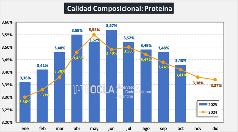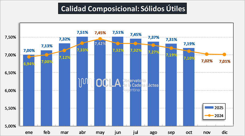 Si analizamos el comportamiento de la producción por estrato productivo, podemos observar que el estrato de más de 6.000 litros diarios de producción, tuvo un crecimiento interanual mayor que el resto de los estratos (12,8%), en enero-octubre de 2025. Por su parte los estratos, medio y bajo presentaron subas menores (11,0% y 1,2% respectivamente).