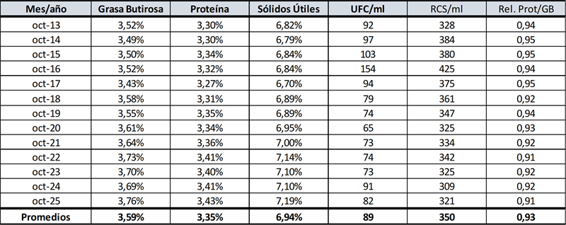 Por último, el análisis de los diez meses transcurridos del año 2025 se realiza sobre las diferentes regiones productivas en función a la producción promedio por tambo (no tambo constante), donde también se observa una gran variabilidad atribuible a distintos factores.