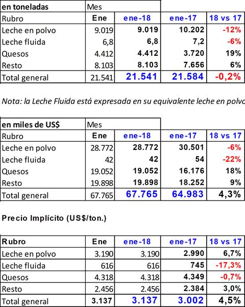 Exportaciones de Lácteos de Argentina: enero 2018 2/3/2018