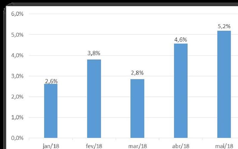 Para analizar el impacto de las importaciones de derivados lácteos en volumen en el mercado nacional, utilizamos los datos de captación formal mensual de leche en 2017 según el IBGE y calculamos, mes a mes, la participación del volumen importado sobre la oferta nacional de leche. El resultado, presentado en el gráfico 2, muestra que el aumento del volumen importado a mediados del año y la reducción estacional de la producción aumenta la participación de las importaciones en el mercado nacional del 2,6% en enero a cerca del 5,2% en mayo .