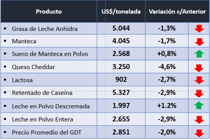 Evento N° 223 del Global Dairy Trade 6/11/2018