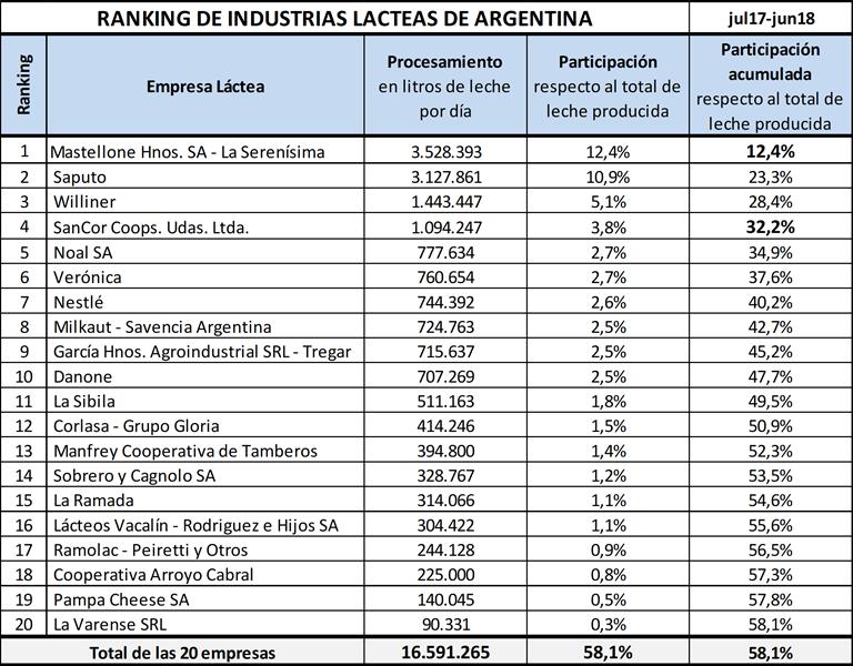 Principales Operadores Lácteos de Argentina 26/11/2018