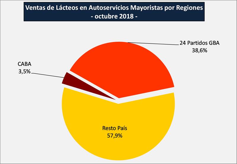 A continuación se presentan los gráficos que muestran la participación de los lácteos en ese canal comercial y la distribución regional: