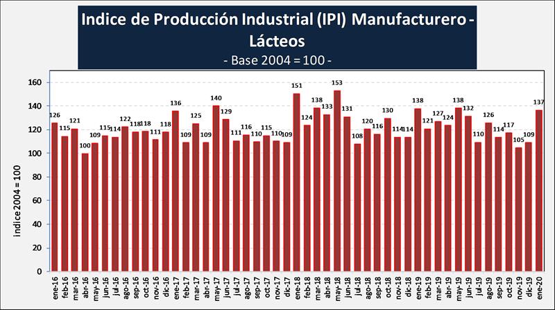 Índice de Producción Industrial Manufacturero – LÁCTEOS - enero de 2020