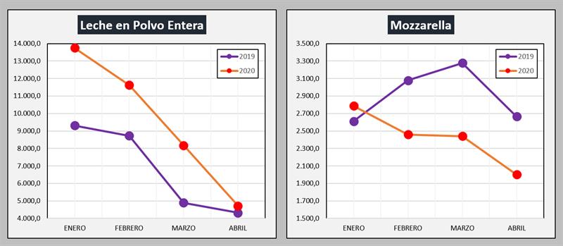 A continuación, se muestra la evolución del volumen exportado de los dos productos más emblemáticos de la lechería de Argentina hacia el mercado externo: