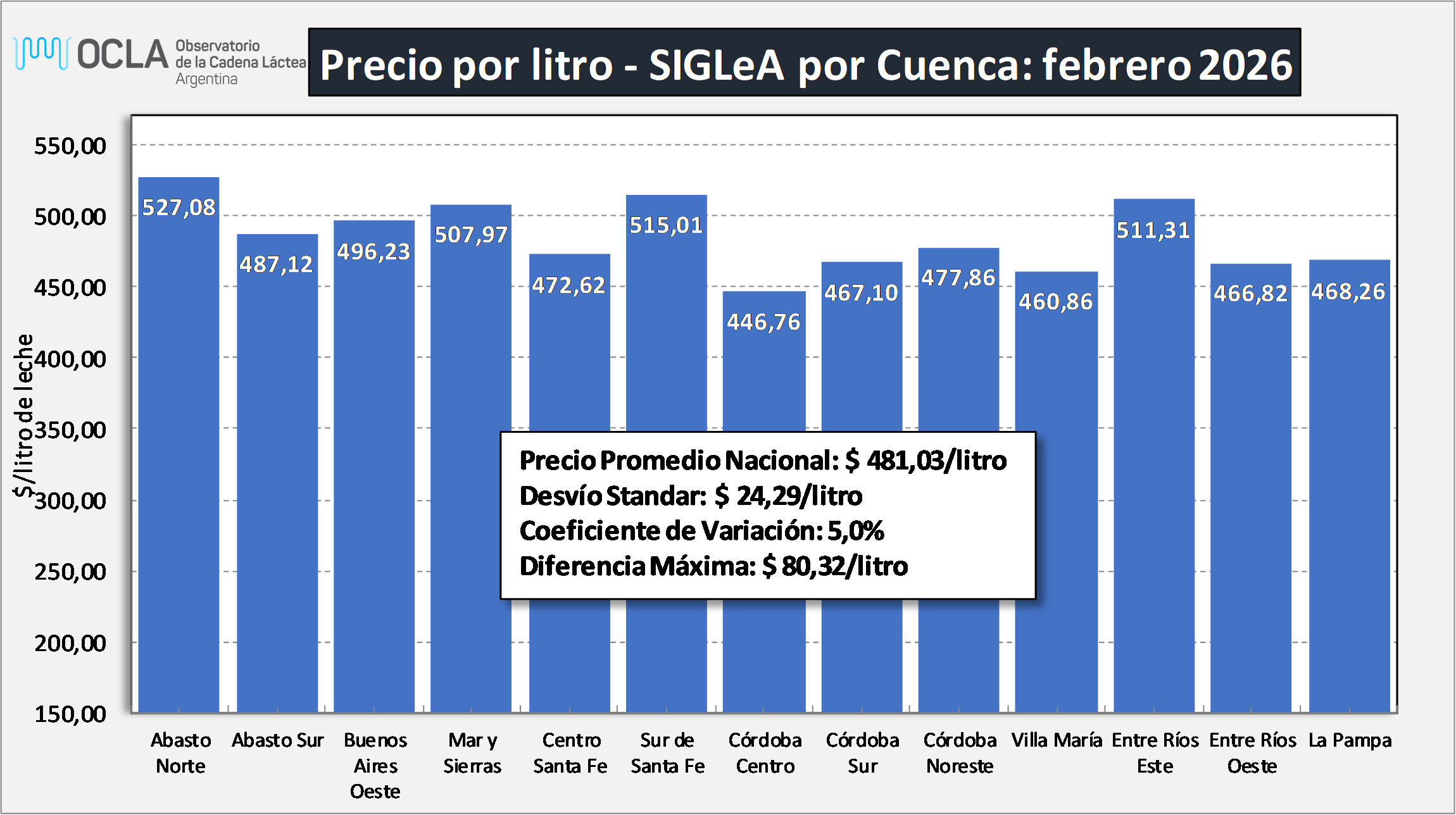 Precios de la Leche SIGLeA - por Cuenca - en $/litro de leche