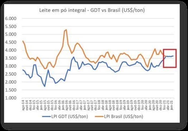 ¡Es la primera vez en 7 años que la leche entera en polvo brasileña iguala los niveles de precios internacionales ! De hecho, según algunos comerciantes, ya hay propuestas cercanas a los US$ 3.600/ton. para la leche brasileña y es posible que tengamos acuerdos cerrados en las próximas semanas.