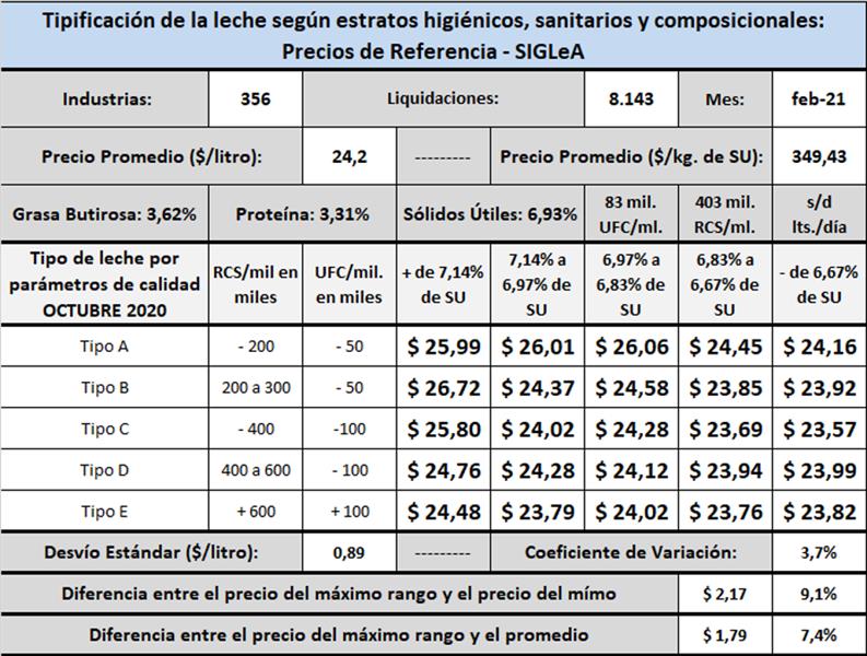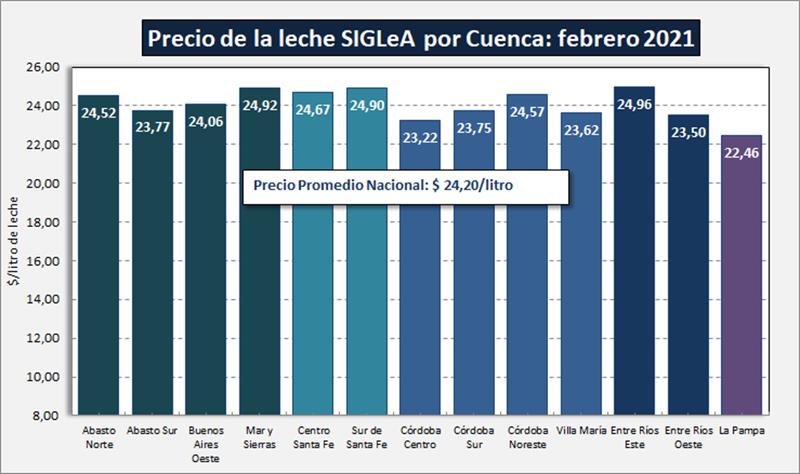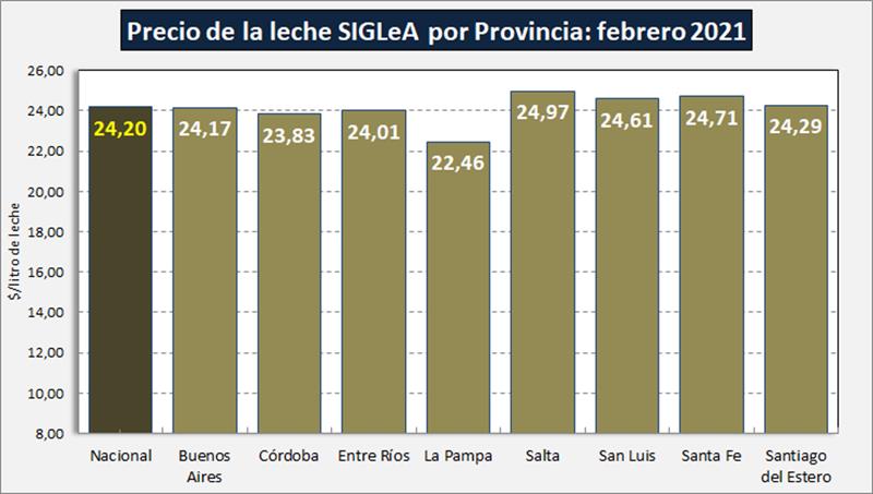 Como información complementaria se incluyen los precios por litro de la leche SIGLeA por provincia y por cuenca: