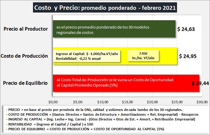 para el mes de febrero del 2021 fue de $ 24,20/litro (SIGLeA) y $ 24,67/litro