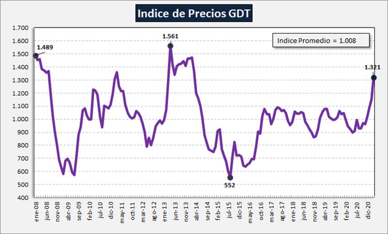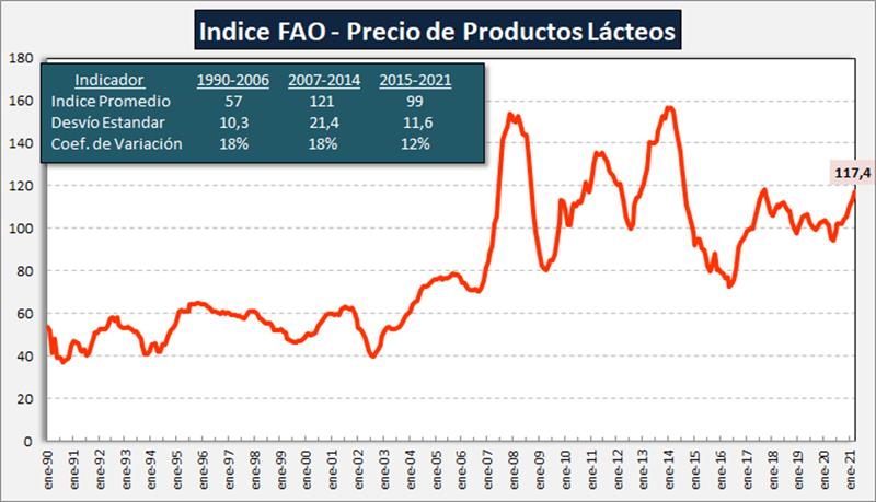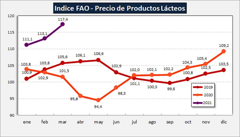 Indice de Precios de los Lácteos de FAO 8/4/2021