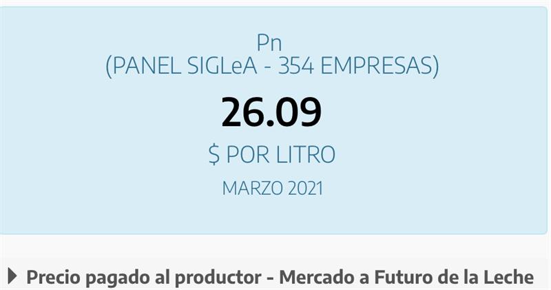 - US$ 0,286/litro (+5,0% intermensual y 0,0% interanual)
