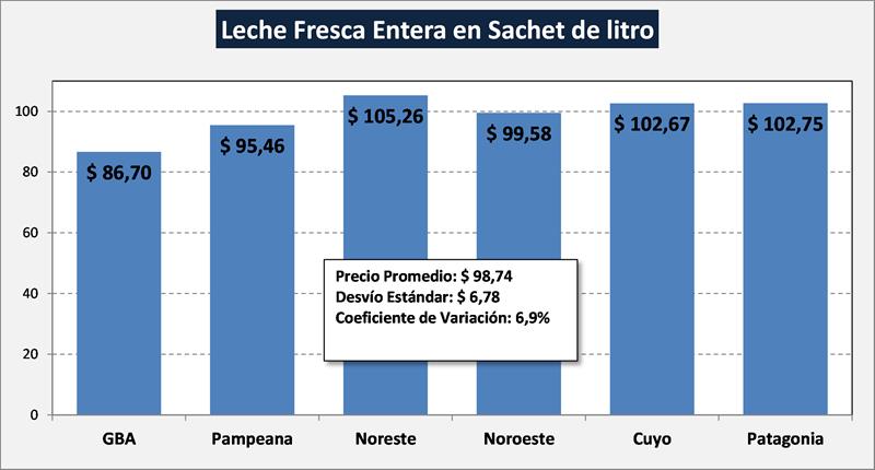 Se observa también en el análisis de los datos y con la información de Consultoras de Mercado, que existe una gran dispersión de precios en función al canal comercial y a la región. El cuadro siguiente ejemplifica la diferencia regional.
