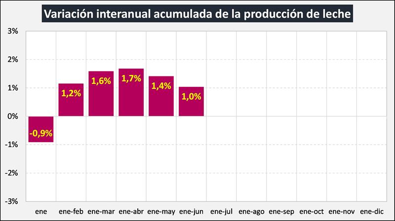 Abajo se puede ver la evolución de los denominados “sólidos útiles” (grasa butirosa y proteína), que subieron el 2,9% en enero-junio 2022, casi el triple del crecimiento de la producción medida en litros de leche (+1,0%).