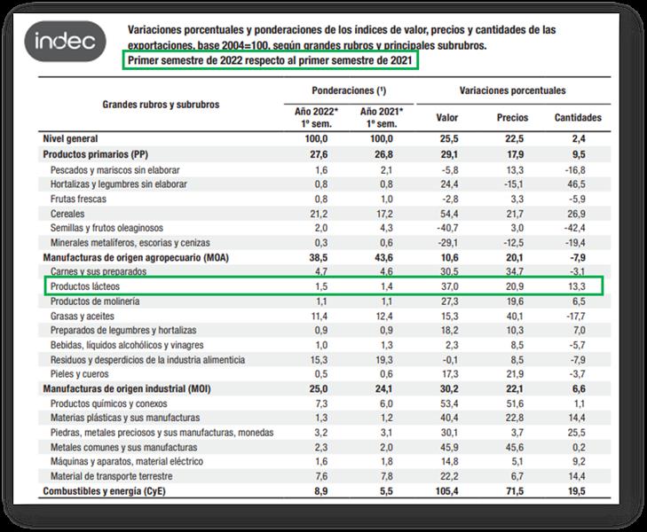 Análisis de los índices de precios y cantidades por grandes rubros y usos económicos. Segundo trimestre de 2022 - Exportación