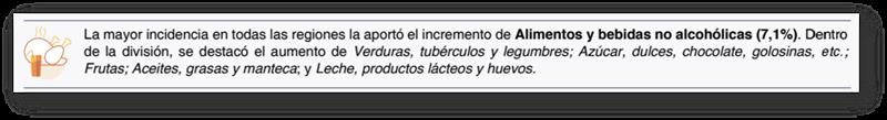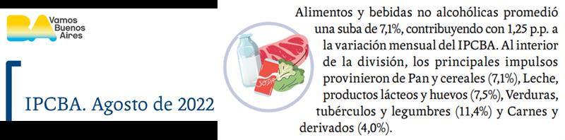 Los alimentos y bebidas no alcohólicas en general, crecieron un 7,1% en agosto de 2022, 58,8% en el período enero-agosto 2022 y un 80,0% en el interanual.