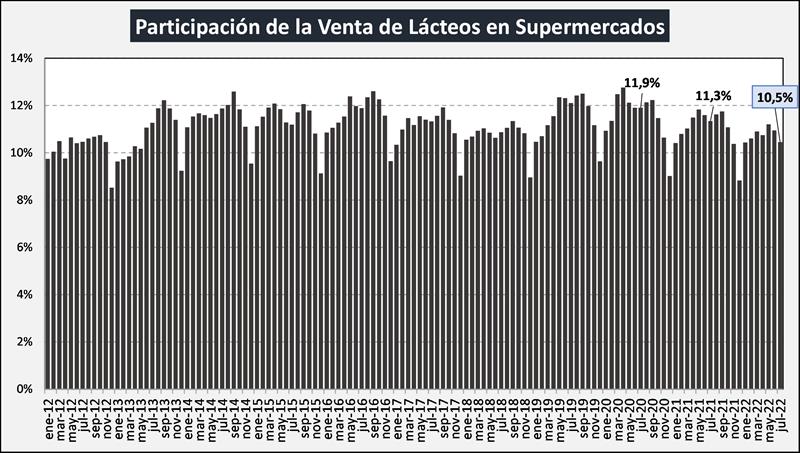 Venta de lácteos en supermercados: JULIO 2022 3/10/2022