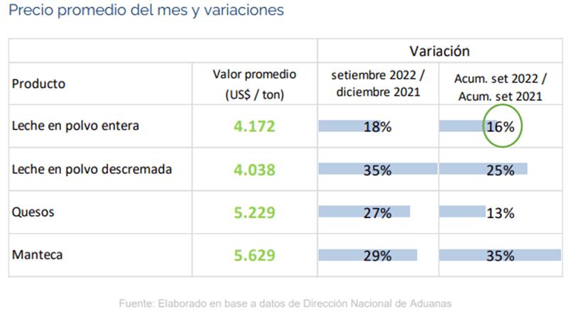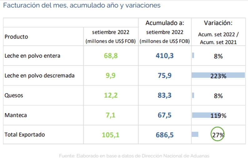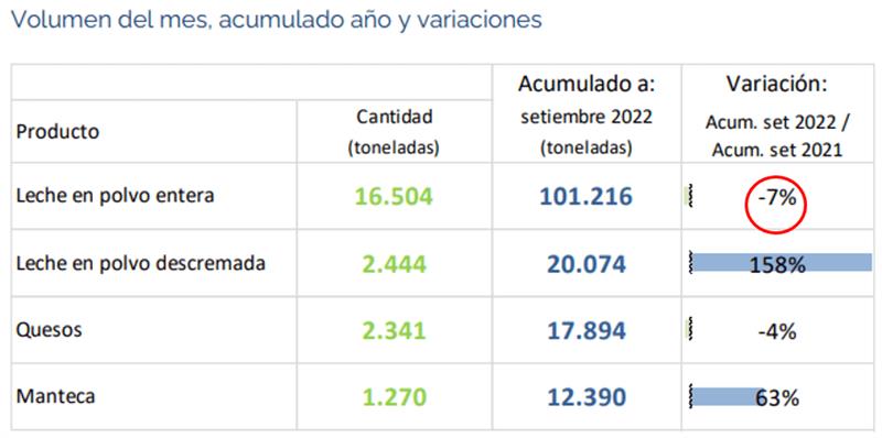 • URUGUAY: exportaciones de lácteos - septiembre 2022 6/10/2022