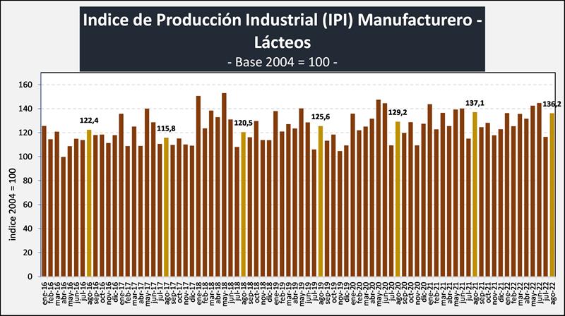 Índice de Producción Industrial Manufacturero – LÁCTEOS - agosto de 2022