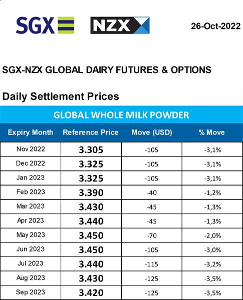 Mercado de Futuros NZX – Leche en Polvo Entera 26/10/2022