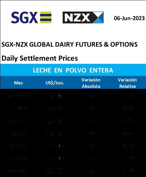 Mercado de Futuros NZX – Leche en Polvo Entera 6/6/2023