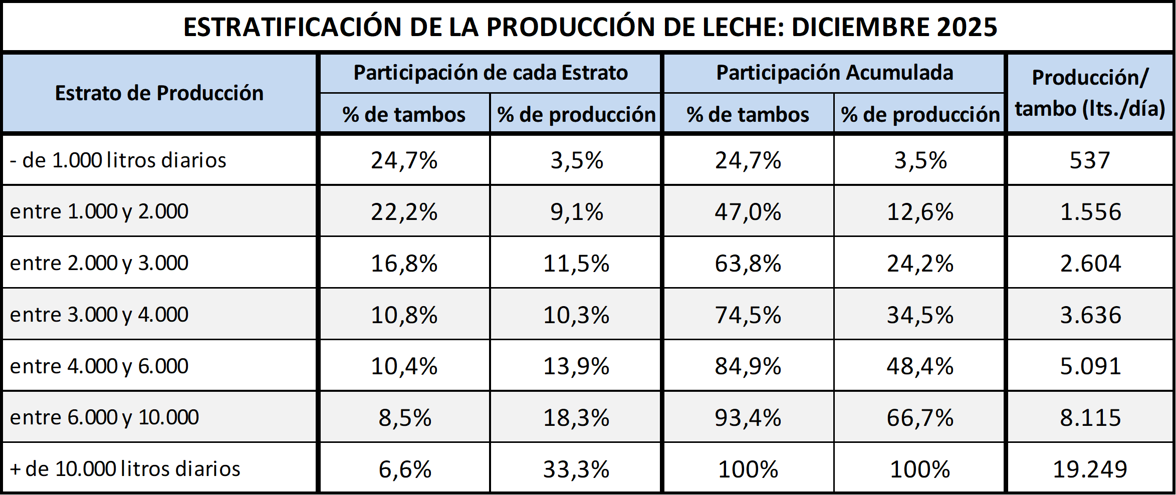 Estratificación de Tambos por la Cantidad de Vacas