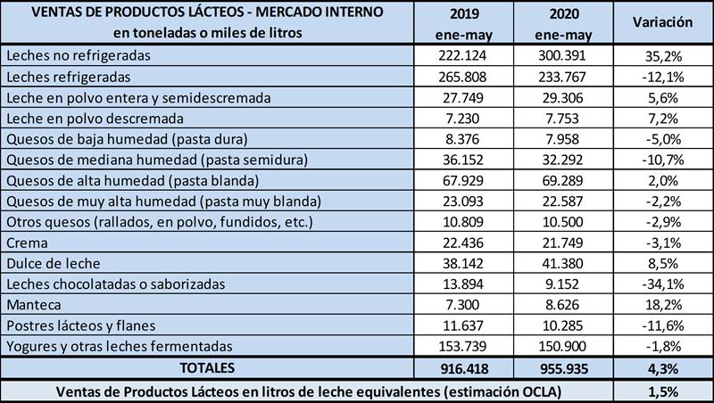 Ventas de Productos Lácteos en el Mercado Interno – mayo 2020 22/7/2020