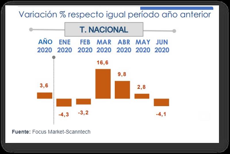 En junio cae el consumo interno un 4,1% luego de 3 meses de variaciones positivas, según Focus Market. A pesar de esta retracción el saldo deja un cierre de semestre con una ganancia de +3,6% en consumo de alimentos.