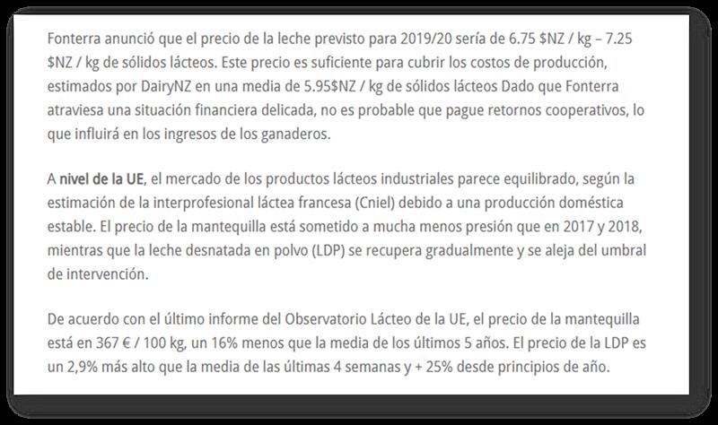 Simuladores de poder de compra de leche, principal producto de mercado externo