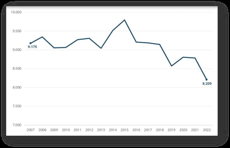 Gráfico 1. Producción anual de leche en Australia (millones de litros)