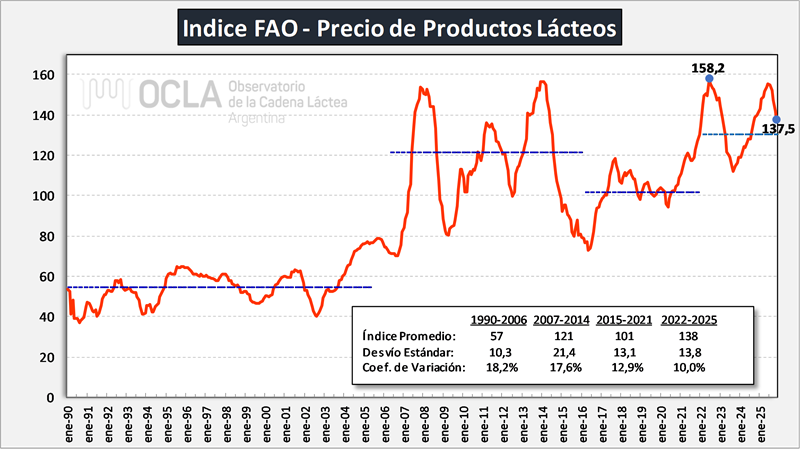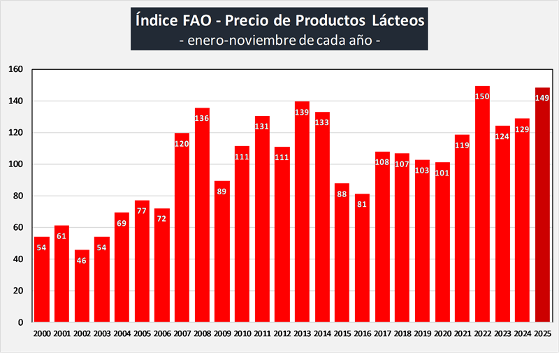Con la información disponible de algunos meses, principalmente a marzo de cada año previas a contar ahora con el Tablero Dinámico Mensual podemos extrapolar por tendencia los meses previos. En base a lo descripto, la variación respecto al mes anterior es de -0,13% unidades productivas y +0,43% de vacas. La variación interanual de noviembre 2025 respecto a noviembre 2024 es de -2,45% unidades productivas y +0,20% de vacas (3.019 cabezas más que noviembre 2024, y 39.358 cabezas más que en noviembre de 2023).