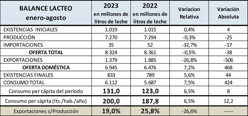 - Consumo Total = Existencia Inicial + Producción + Importaciones - Exportaciones - Existencia Final.