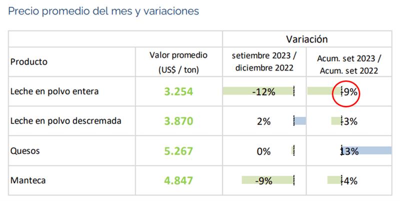 URUGUAY: exportaciones de lácteos - septiembre 2023