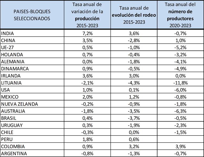 Además de India, otros países del sur de Asia, como Pakistán (+3,8%) y Bangladesh (+7,6%), también han experimentado un fuerte aumento estructural en la producción de leche de vaca.