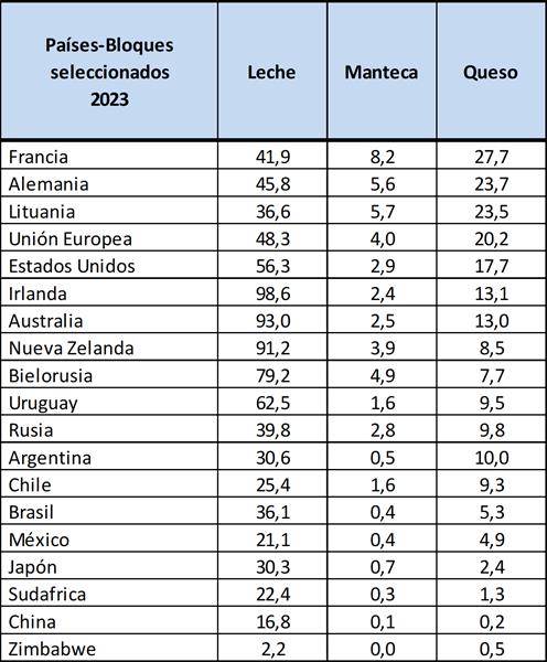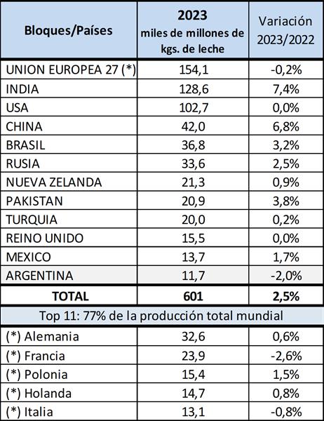 elaborado por el OCLA con datos del World Dairy Situation 2024 de la Federación Internacional de Lechería IDF/FIL