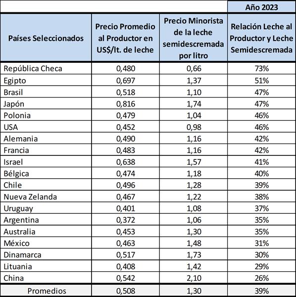 Tampoco se consideran las diferentes tasas de venta (IVA) que van del 0% al 27%, y que la leche fluida no es representativa del total del destino de la leche, donde los quesos y las leches en polvo tienen mayor participación relativa en el destino a productos. Además, cabe aclarar que la leche fluida es muchas veces utilizada por la distribución minorista como producto reclamo, oferta, gancho para atraer al consumidor y que los productores de esos países piden que esta situación se modifique (Ejemplo: España).