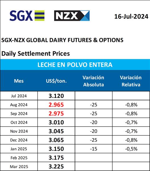 Mercado de Futuros NZX – Leche en Polvo Entera 16/7/2024