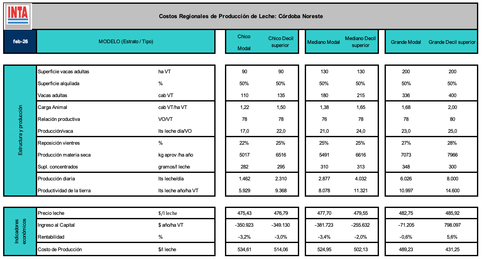 PRECIO = en base al precio por provincia que publica la DNL-MinAgro, calidad y volumen de cada tambo.