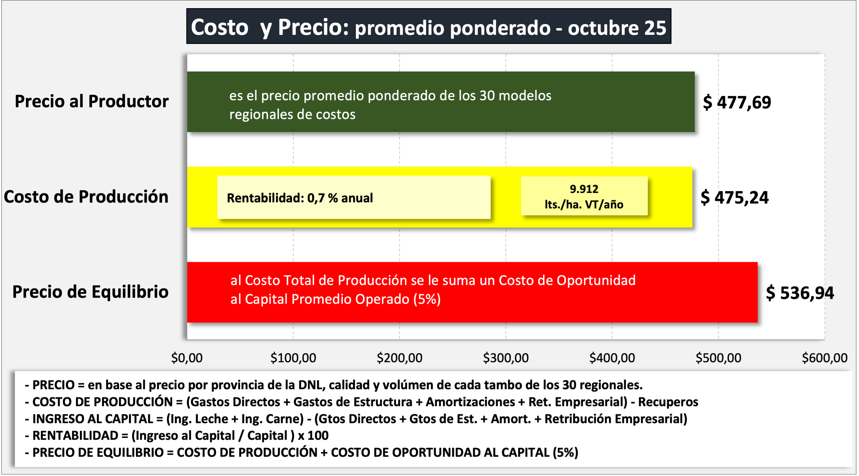 INGRESO AL CAPITAL = (Ingreso Venta de Leche + Ingreso por Carne) – (Gastos Directos + Gastos de Estructura + Amortizaciones + Retribución Empresarial)