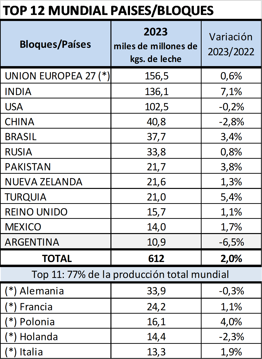 elaborado por el OCLA en base a datos de World Dairy Situation 2023 - FIL/IDF.