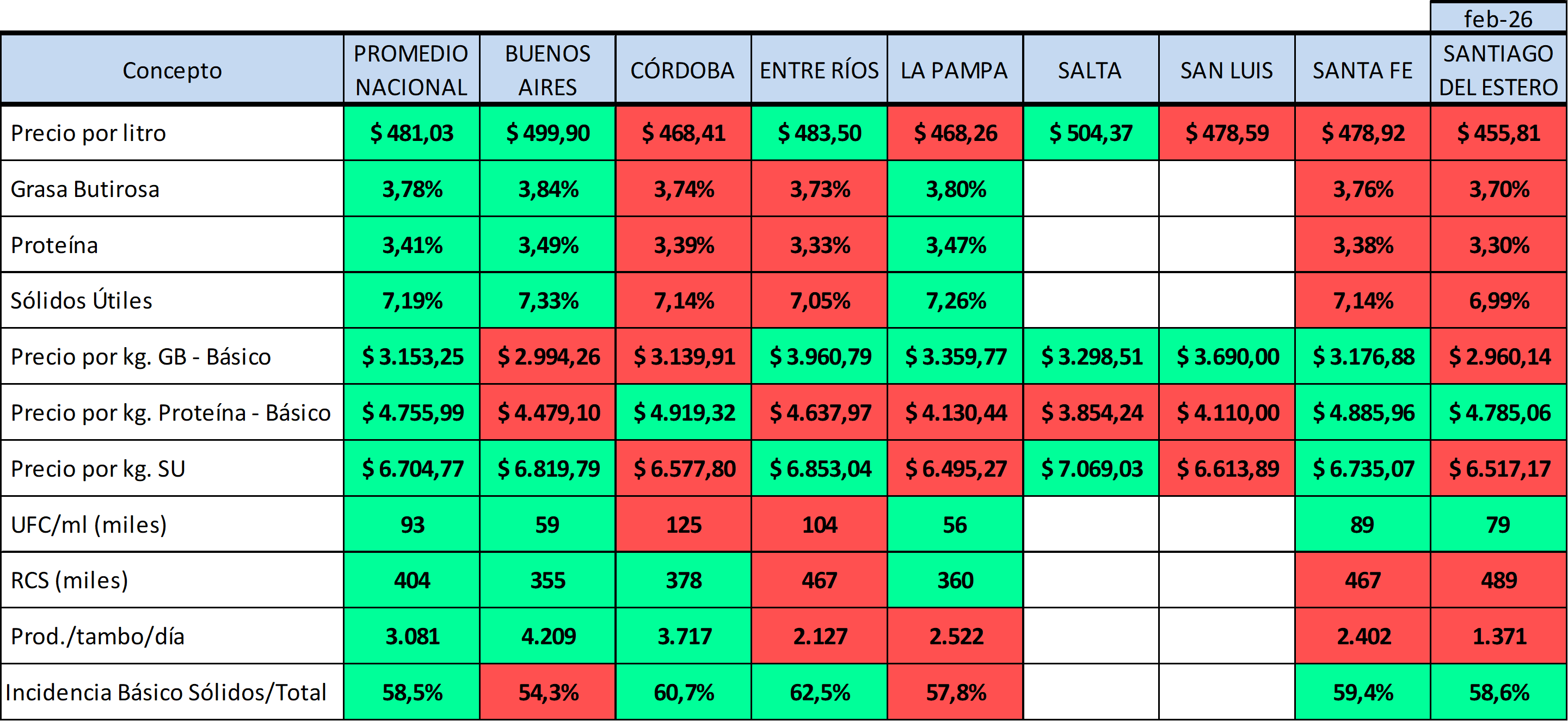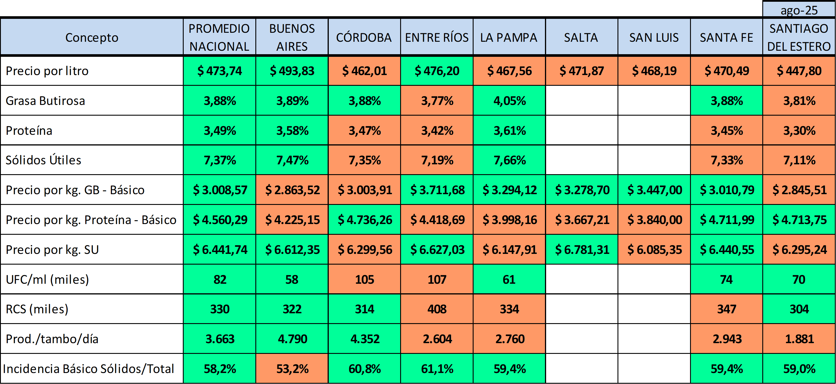 independientemente del precio que paga cada empresa, la calidad composicional, higiénica y sanitaria, al igual que el volumen, deberían incidir en la determinación del precio promedio que se paga en cada provincia