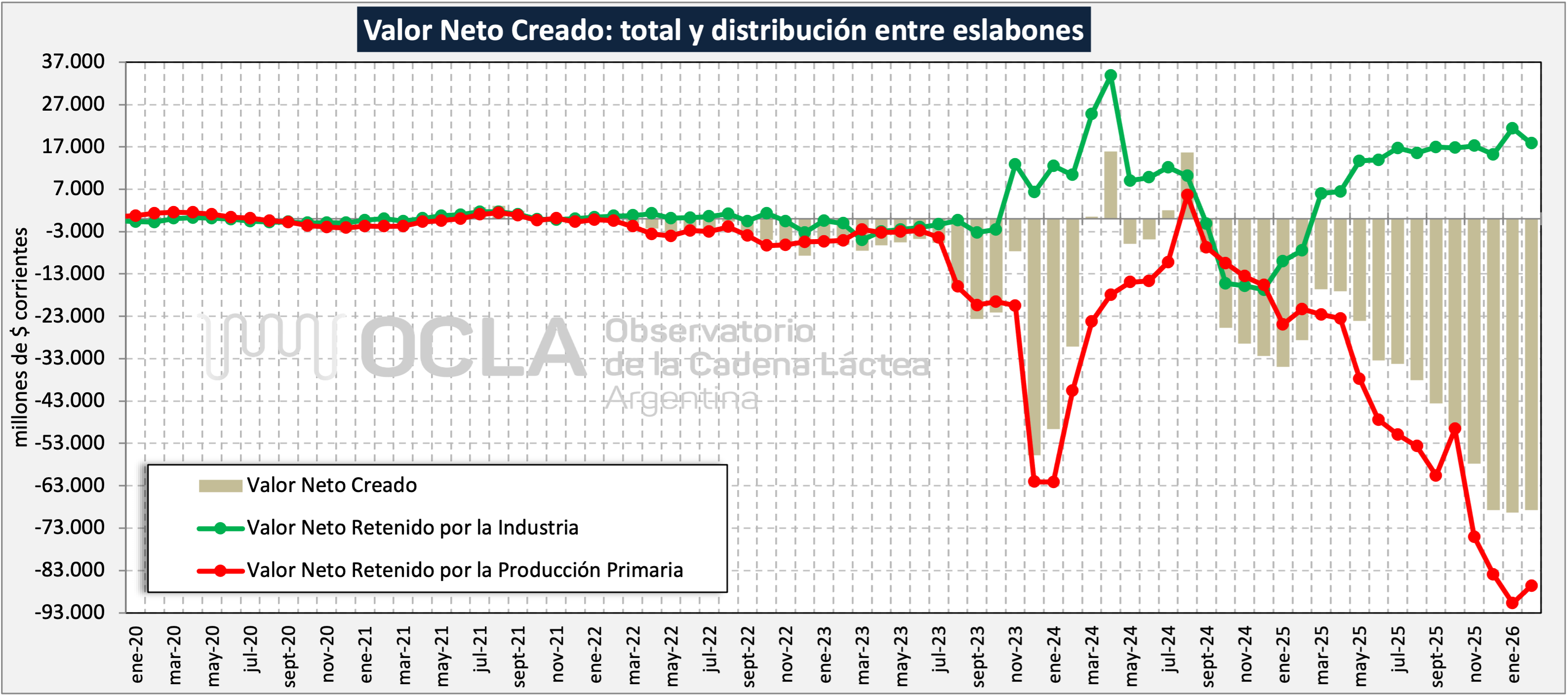 Eslabón Industrial = Valor Recibido a Salida de Fábrica - Valor Aplicado sin Materia Prima Leche - Valor Transferido por Leche a los Tambos.