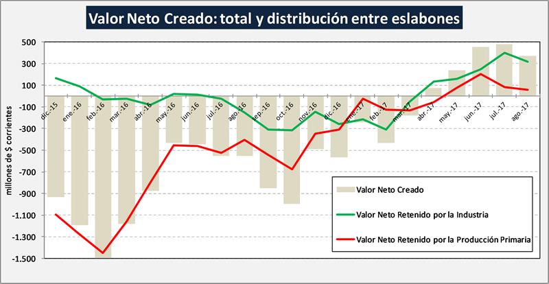 · Eslabón Industrial = Valor Recibido a Salida de Fábrica - Valor Aplicado sin Materia Prima Leche - Valor Transferido por Leche a los Tambos.