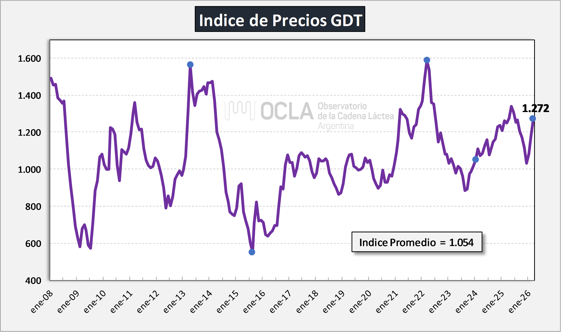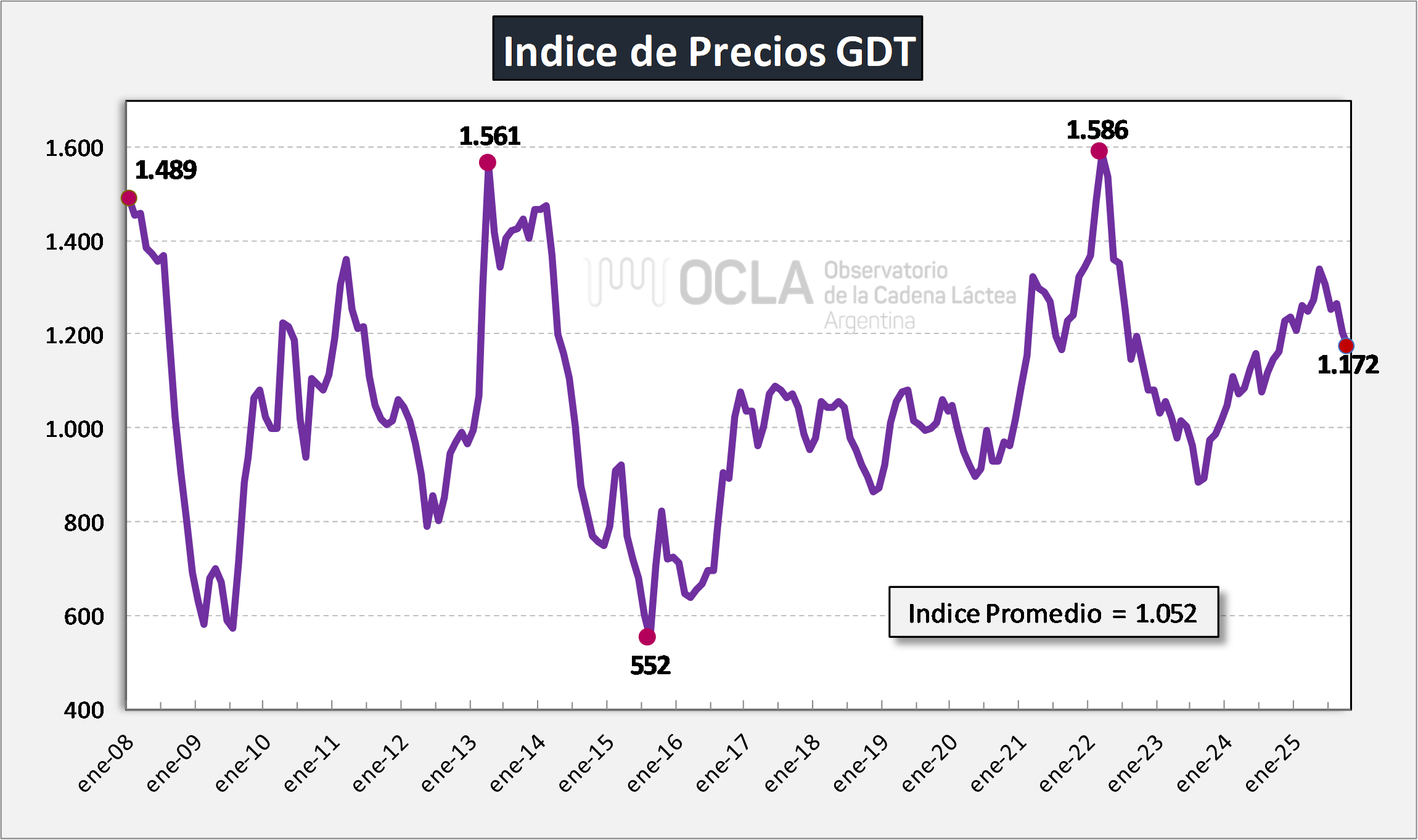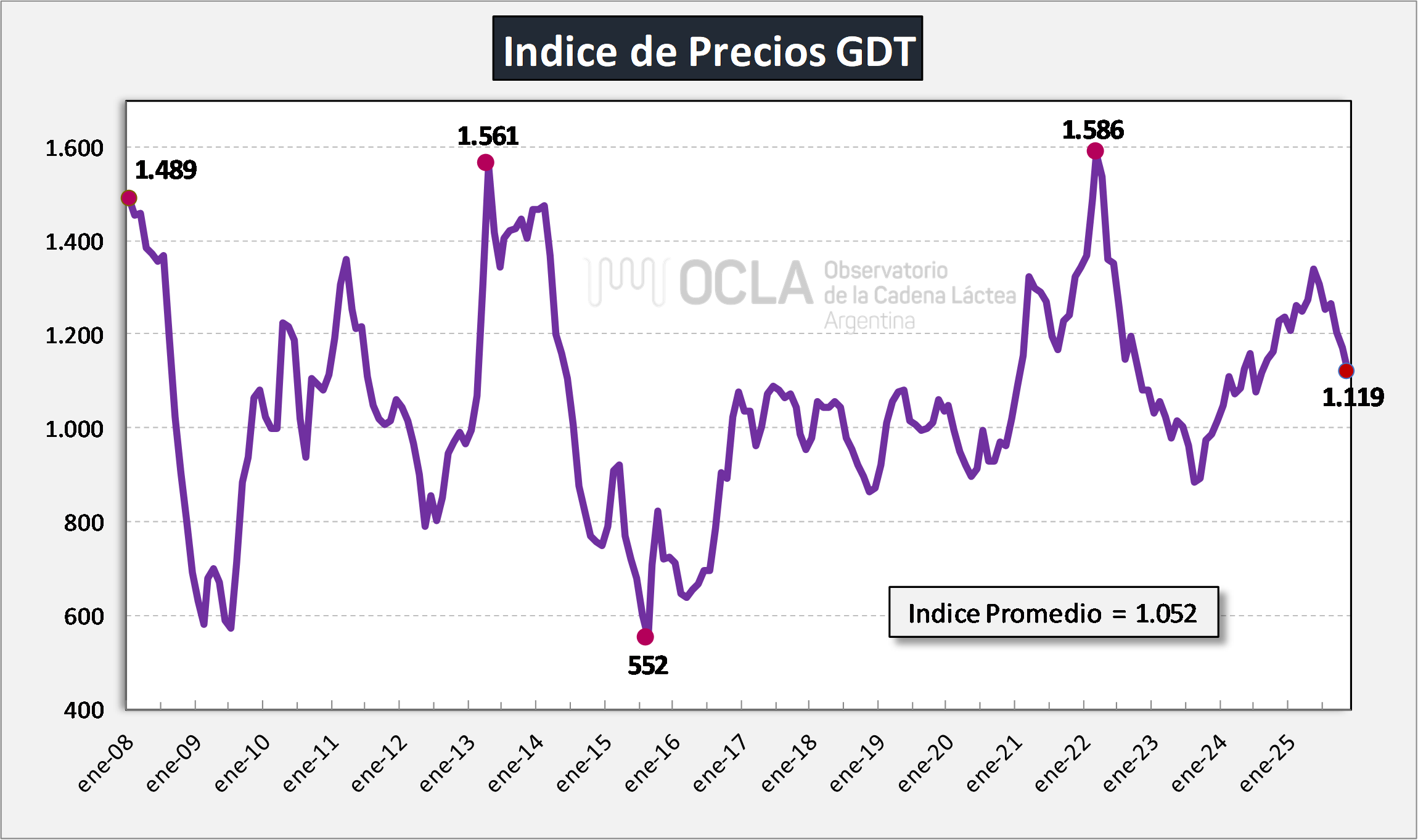 El índice de precios GDT mide el movimiento de todos los precios publicados para los productos vendidos en GDT, mientras que los índices de productos individuales describen el movimiento en los precios para un tipo de producto específico.