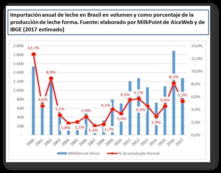 Brasil: importaciones de lácteos caen 32% en 2017 10/1/2018