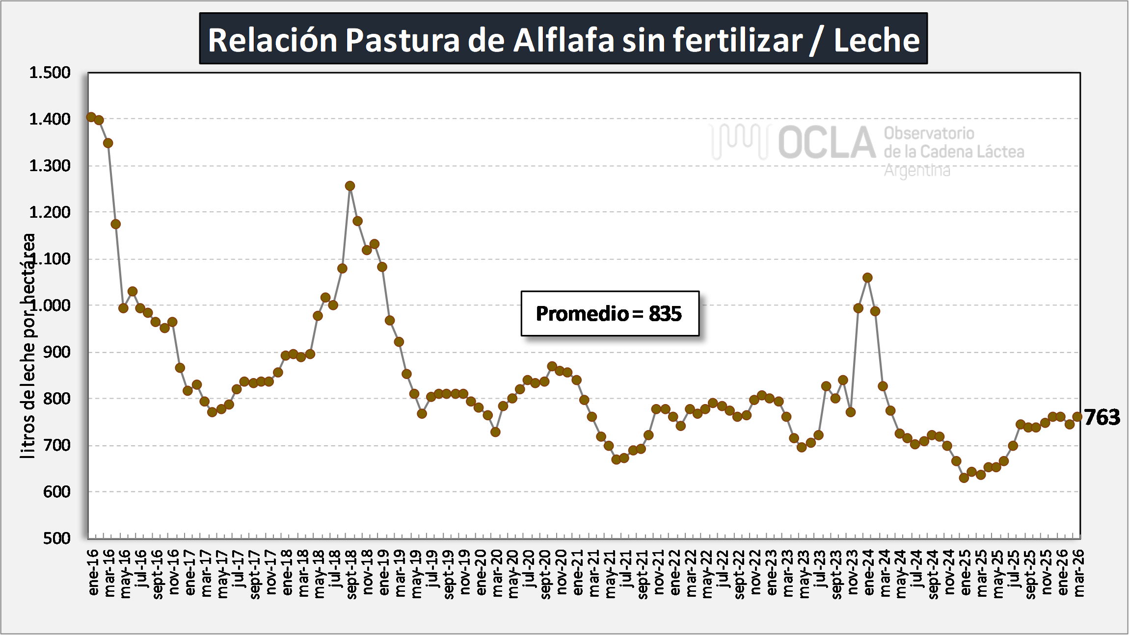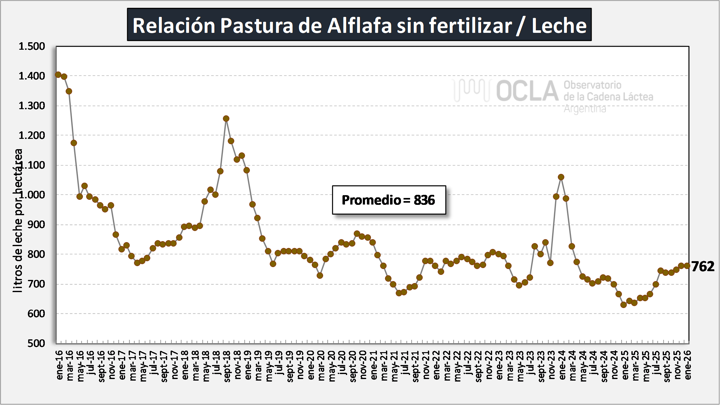 Relación Alfalfa sin fertilizar/Leche